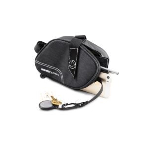 Compatible con la mayoría de las bicicletas, aprovecha el espacio bajo el asiento como un práctico compartimento de almacenamiento.