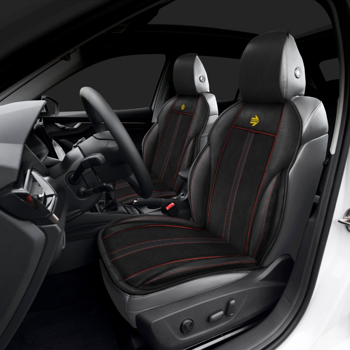 Cubre Asiento MOMO Oficial Con Cojin Negro/Rojo Butaca Individual Universal