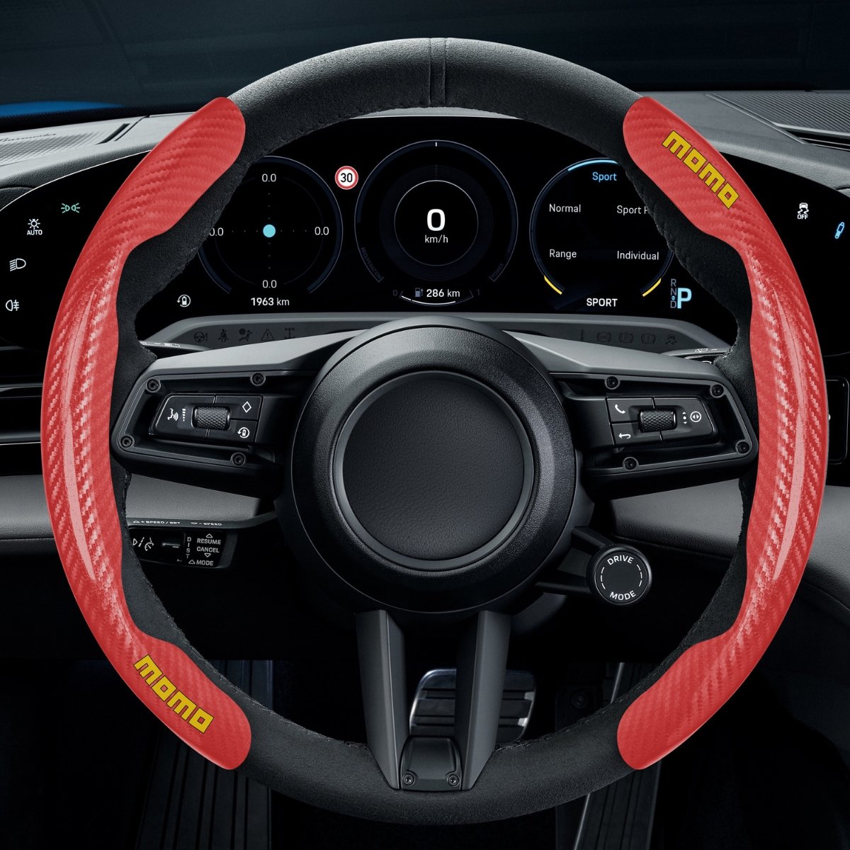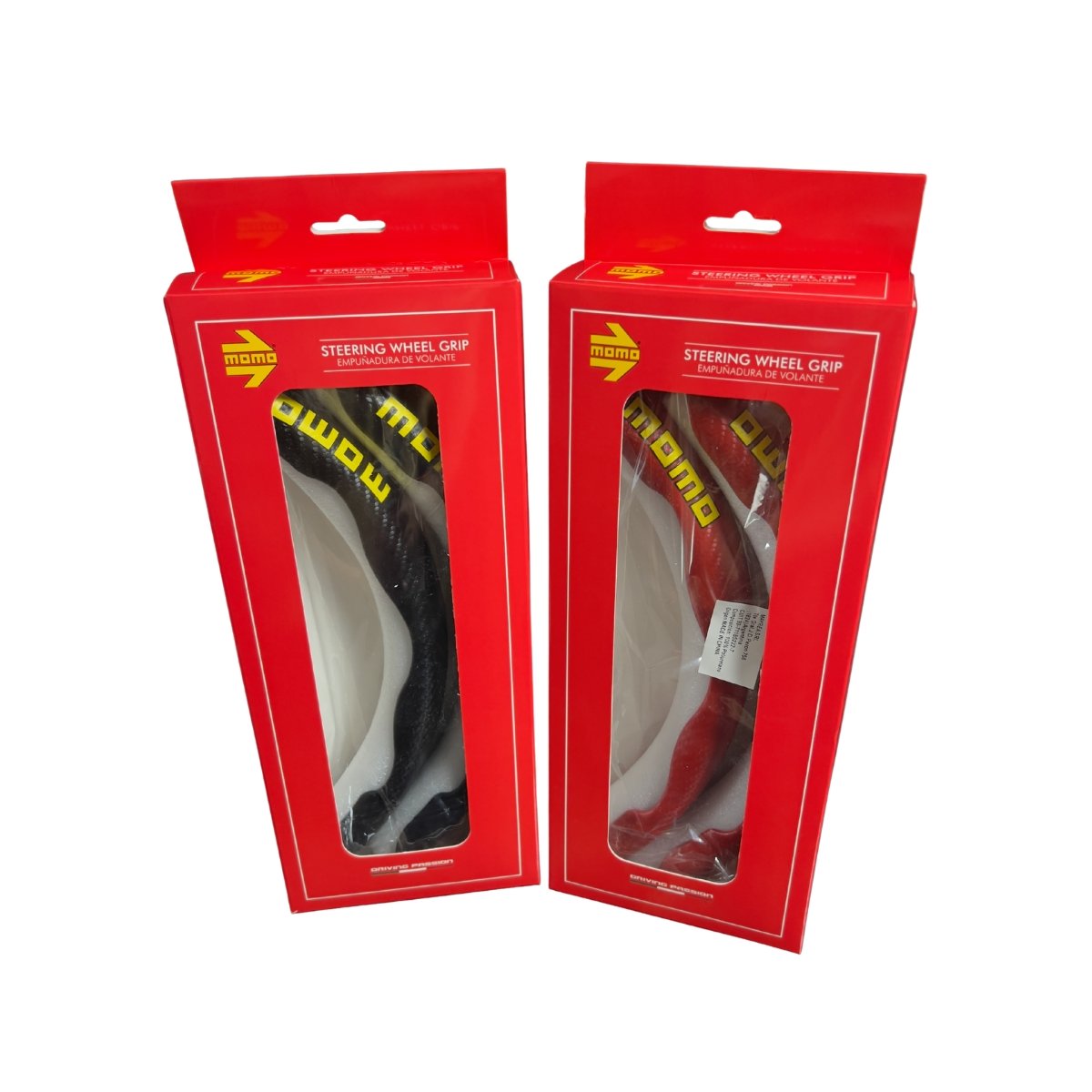 Cubre Volante MOMO Oficial Grips Aplique Tipo Fibra De Carbono Negro 2 Piezas
