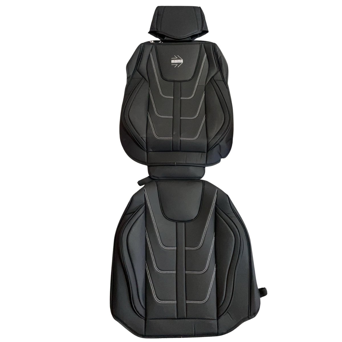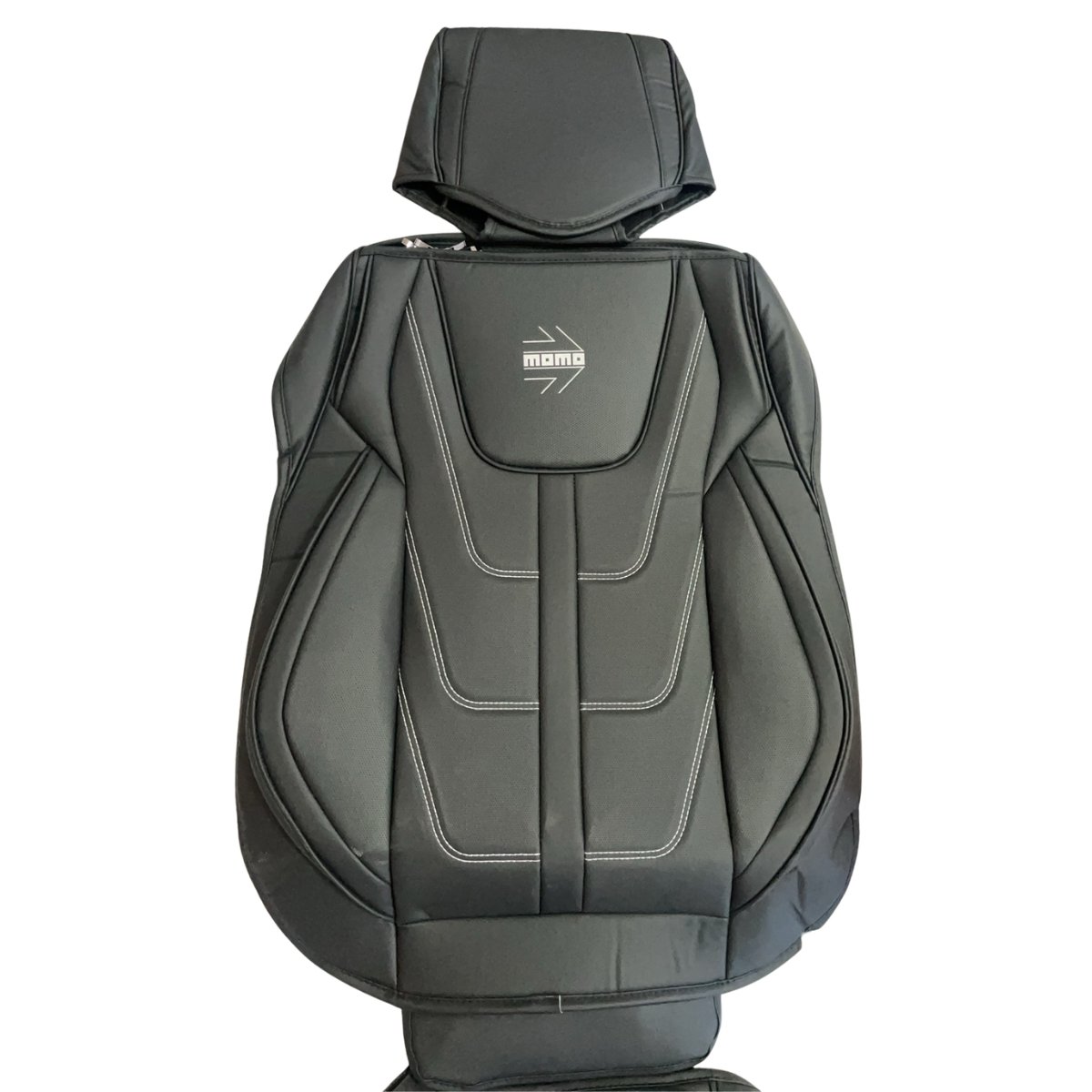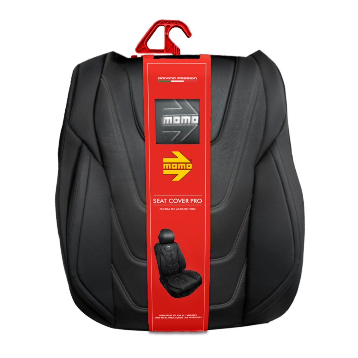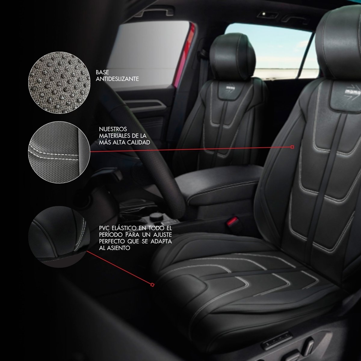 Funda Cubre Asientos MOMO Oficial Negro/Blanco Con Espalda Antideslizante Individual P/Auto/Suv/Pick Up/Etc