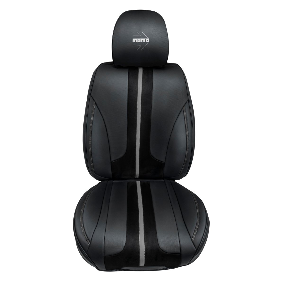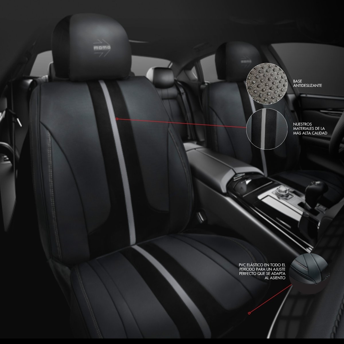 Funda Cubre Asientos MOMO Oficial Negro/Gris Con Espalda Antideslizante Individual P/Auto/Suv/Pick Up/Etc