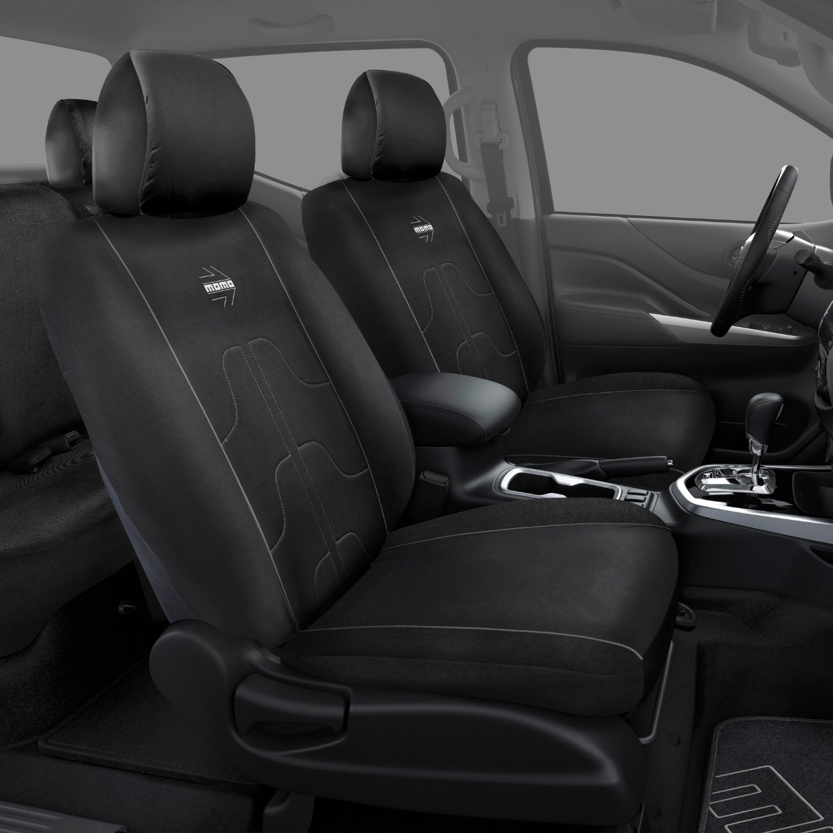 Funda Cubre Asientos MOMO Oficial Negro/Gris Set Completo P/Auto/Suv/Pick Up/Etc