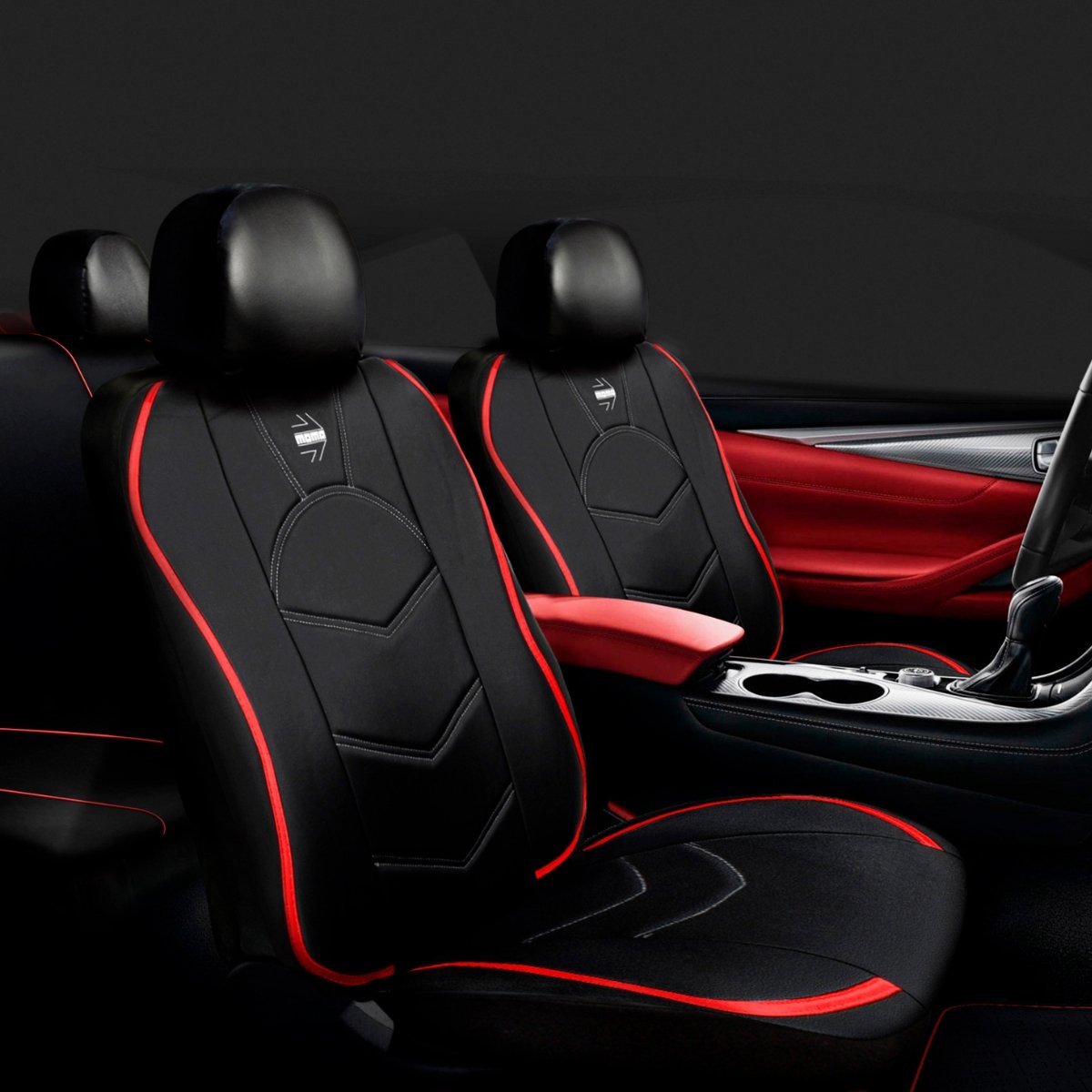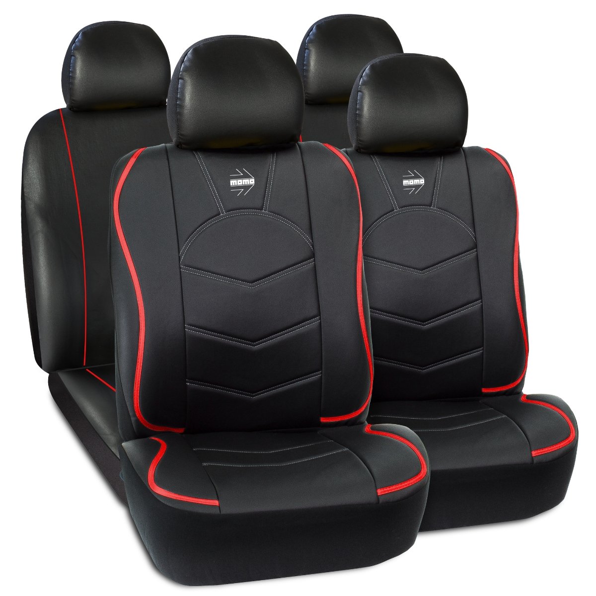 Funda Cubre Asientos MOMO Oficial Negro/Rojo Bordado Logo Broderie Blanco Set Completo P/Auto/Suv/Pick Up/Etc