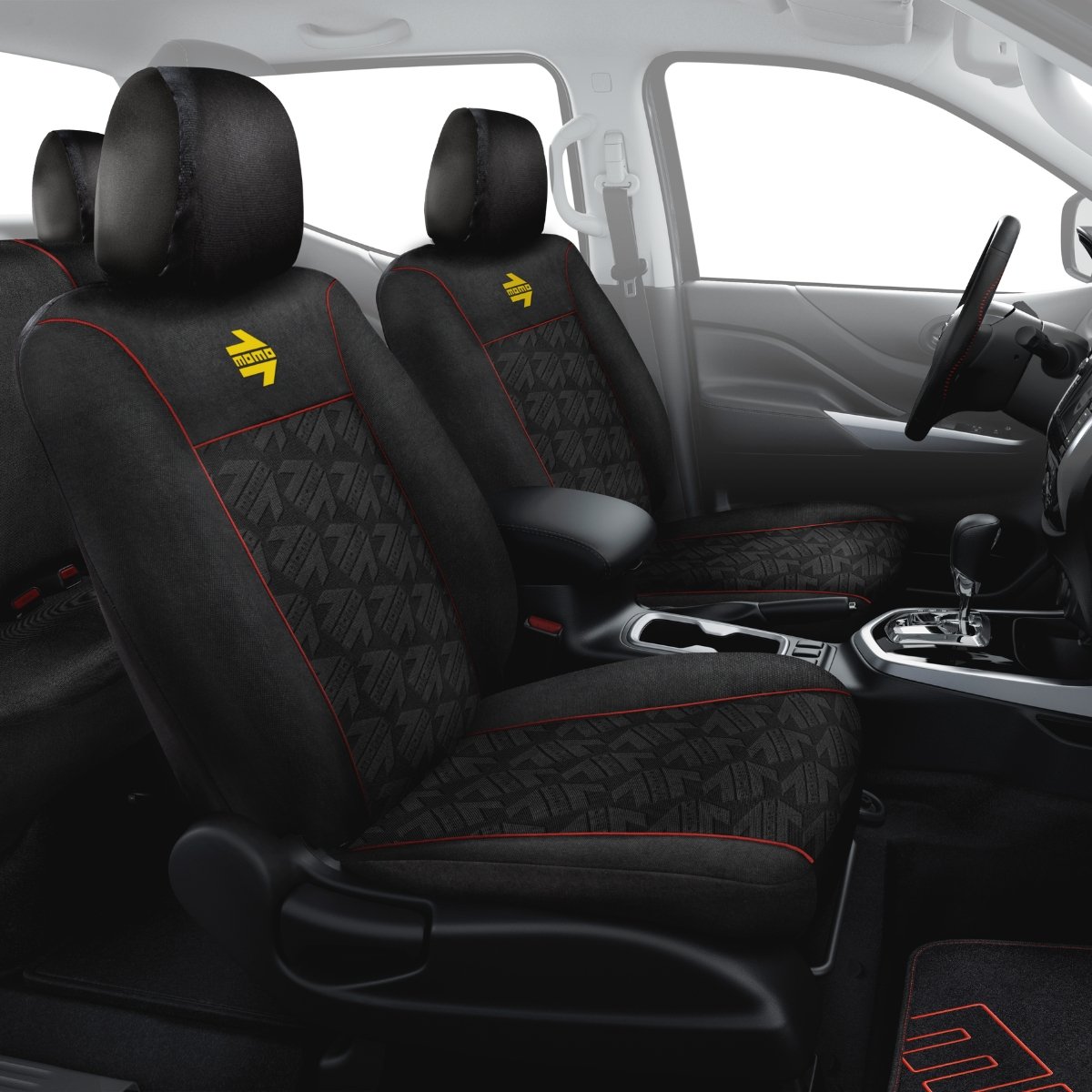 Funda Cubre Asientos MOMO Oficial Negro con Rojo Con Logo MOMO Oficial Grabado En Relieve Set Completo Para Auto/Suv/Pick Up/Etc